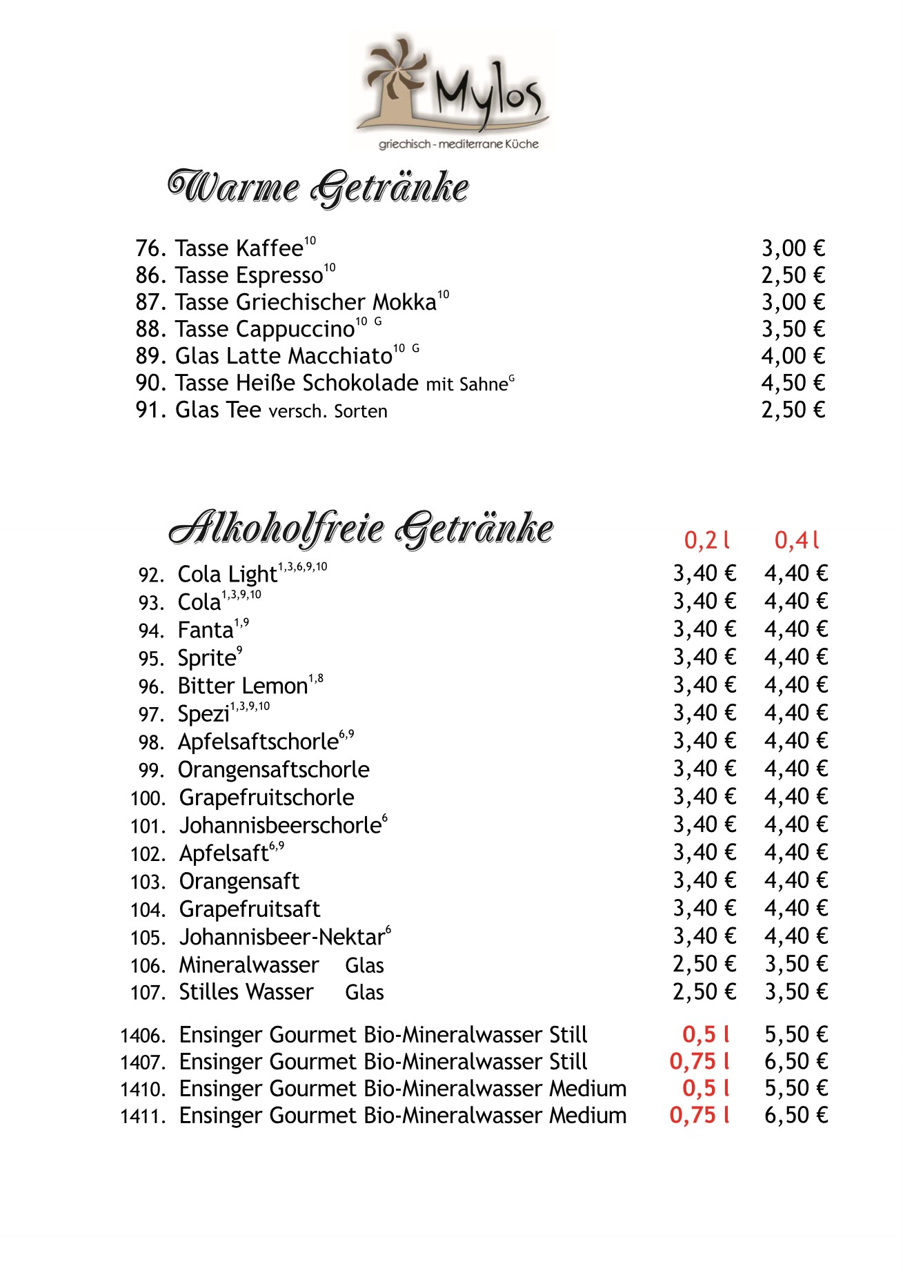 Tauchen Sie ein in die Aromen Griechenlands und genießen Sie gesellige Stunden mitten in der Stadt. Ob saftiges Fleisch und frisches Gemüse direkt vom Grill, unser beliebtes Gyros, knackige Salate oder süße Desserts – im Mylos verwöhnen wir Sie mit Leidenschaft und Qualität.